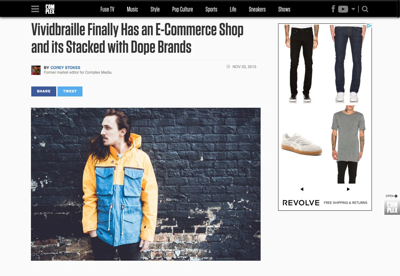 Vividbraille is a contemporary design and streetwear label. The brand started by selling limited hand printed tees and quickly grew into a full fledge cut and sew label for both men and women. In 2011 Vividbraille opened its first concept flagship store which was located on Damen Ave in the Wicker Park/Bucktown neighborhood in Chicago, IL. By 2013 the store was named a top 8 sneaker boutique in Chicago by Complex magazine while also receiving international recognition for its 2013 unisex collection photographed at the historic Horween leather factory in Chicago. The concept flagship store featured a 4 color manual screen printing press while selling world renown labels like Y-3, Opening Ceremony, Yuketen, Rick Owens x Adidas, Vans Vault, Saucony Elite and Public School.