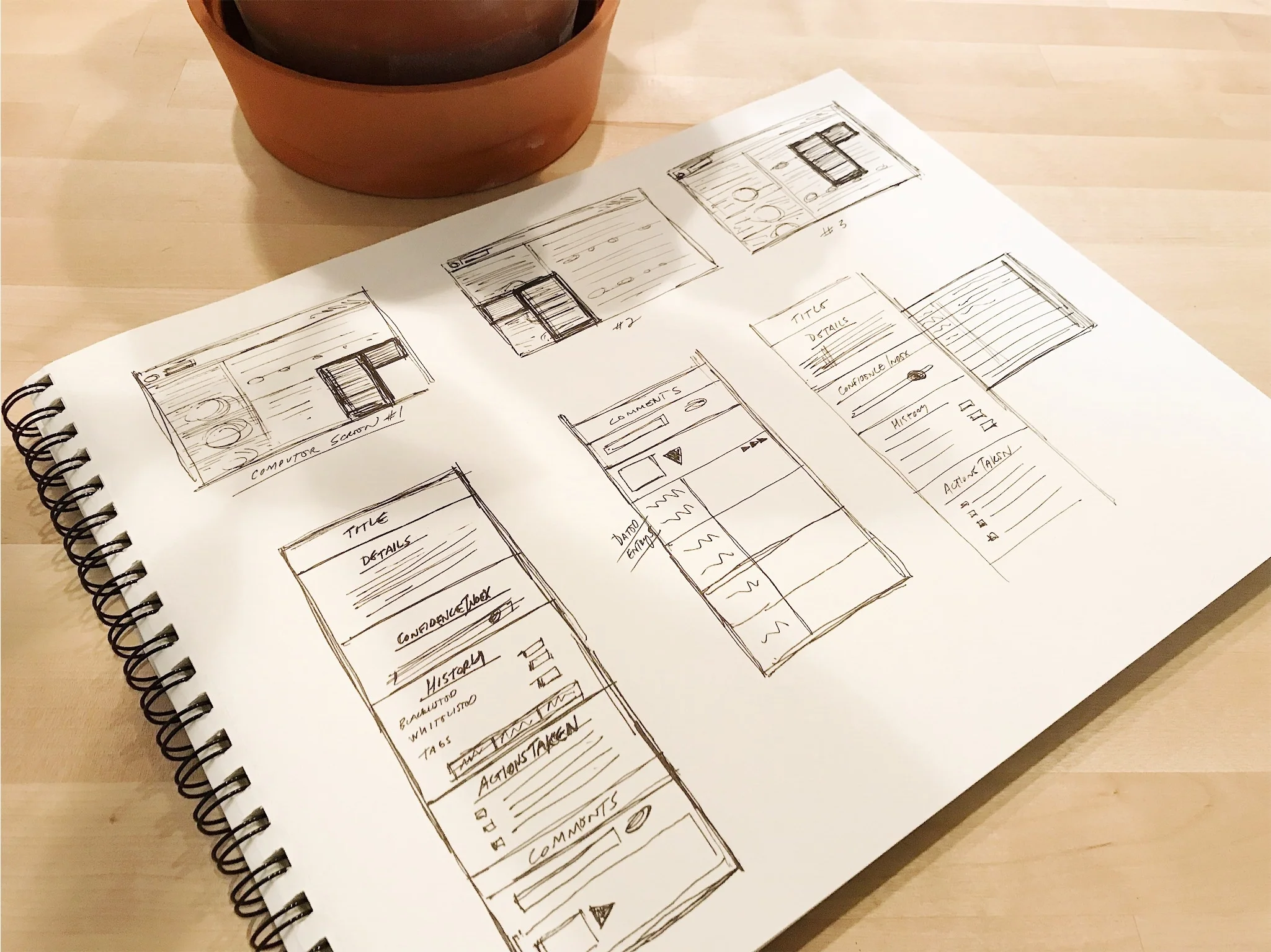 5thColumn's cybersecurity software monitors various layers of activity and data. The user of this software needs to be able to "drill" into this data at times and make notes based on the network's observed behavior. It was important to first layout the placement of the tool within in the context of the entire program (see the top of my wireframe sketch). It was decided to start with the tool being fixed to the bottom right. The current version of the program had natural space to the bottom right which eliminated a number of obstacles allowing efficient development of the tool. Future revisions would allow the tool to be moved freely with the click and drag. Other considerations were to create a button allowing the user to choose having the modules slide out on the right or left side. I designed the tool to be able to easily accommodate these changes pending future user testing.